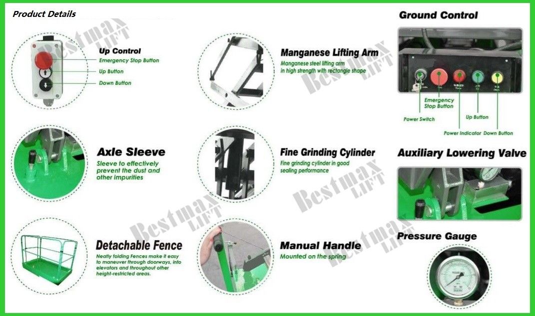 مطلوب منصة تمديد دائما إلى eqquip في رفع مقص من قبل عملائنا، وعموما منصة يمكن أن تمتد 0.8M على جانب واحد (الجانب العرض)، كما هو منصة تمديد dagling، قدرة التحميل من هو أقل من المنصة الرئيسية التي هي 120KG.