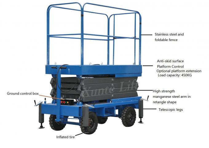 آلة يمكن أن تجعل من منصة التمديد على الجانب العرض. قدرة التحميل هو 50 كجم، وطول منصة تمديد يعتمد على ارتفاع رفع ومنصة حجم الجهاز